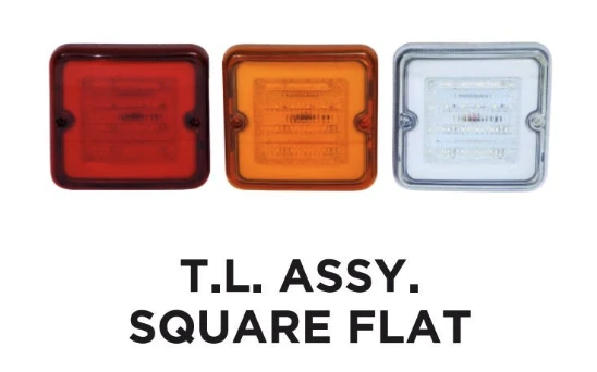 A flat, square-shaped tail lamp assembly designed for compact mounting and clear rear signaling. Suitable for commercial and utility vehicles requiring a low-profile tail light.